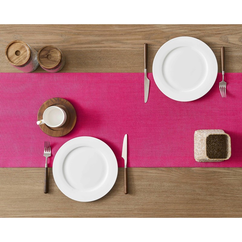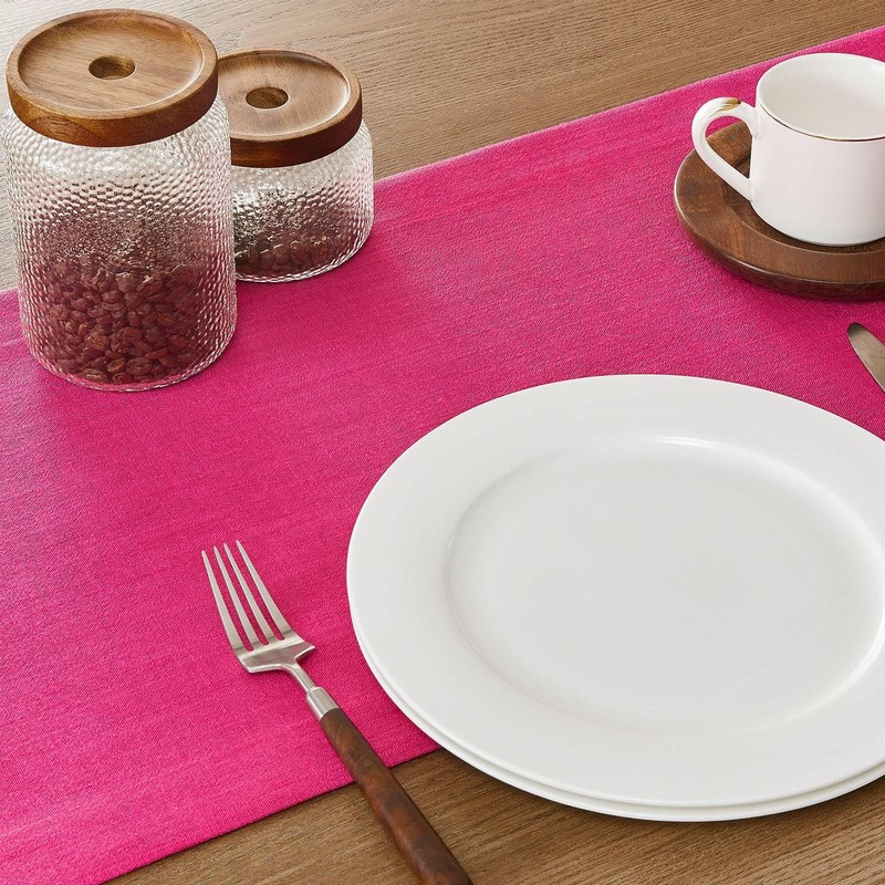 ZeeMart Linen Textured Border Table Runner, 14 x 48 Inch Hot Pink, Farmhouse Style Pink Table Runners 48 Inches Long, Easy Care Everyday Polyester Table Runner