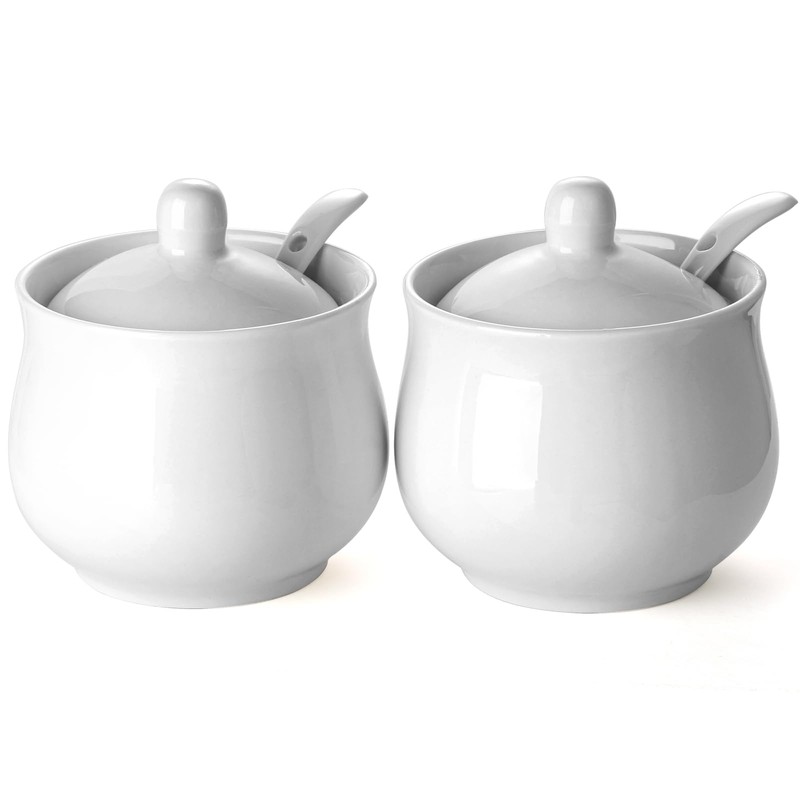 - With timeless style and practical functionality, this white sugar bowl set would be a nice choice for your family or friends