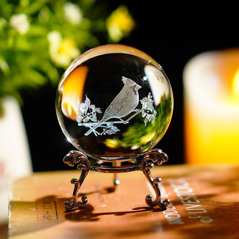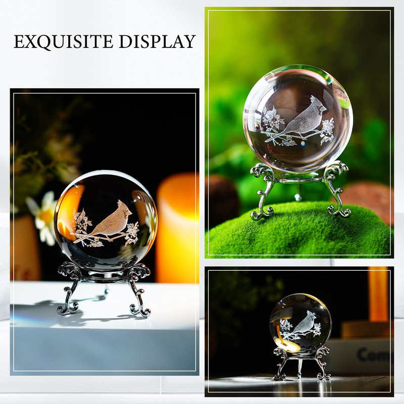 - Material: The sphere is made of high quality K9 crystal, the inner pattern is a cardinal bird standing on the branch, which is vivid and exquisite.