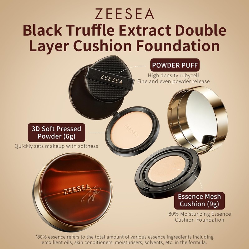 zeesea 2 in 1 Black Truffle Cushion Foundation,Makeup Double Layer Cushion BB Cream &Setting Powder for Oil Control,Tinted Moisturizer,Long-lasting, Natural, 0.32 + 0.18oz (9g + 6g)