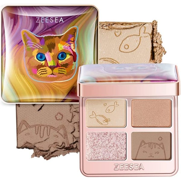 zeesea Tipsy Kitty Eyeshadow Palette Quad, Waterproof Eye Shadow for Catgirls, Matte Eyeshadow, Shimmer Eye Shadow Palette Makeup