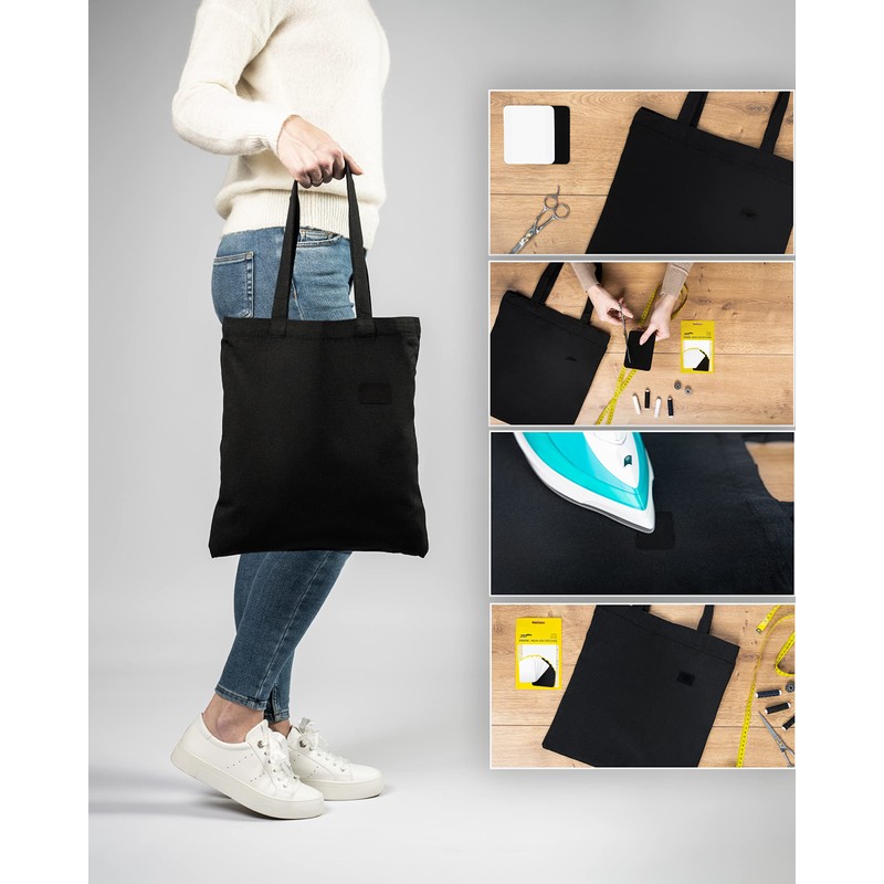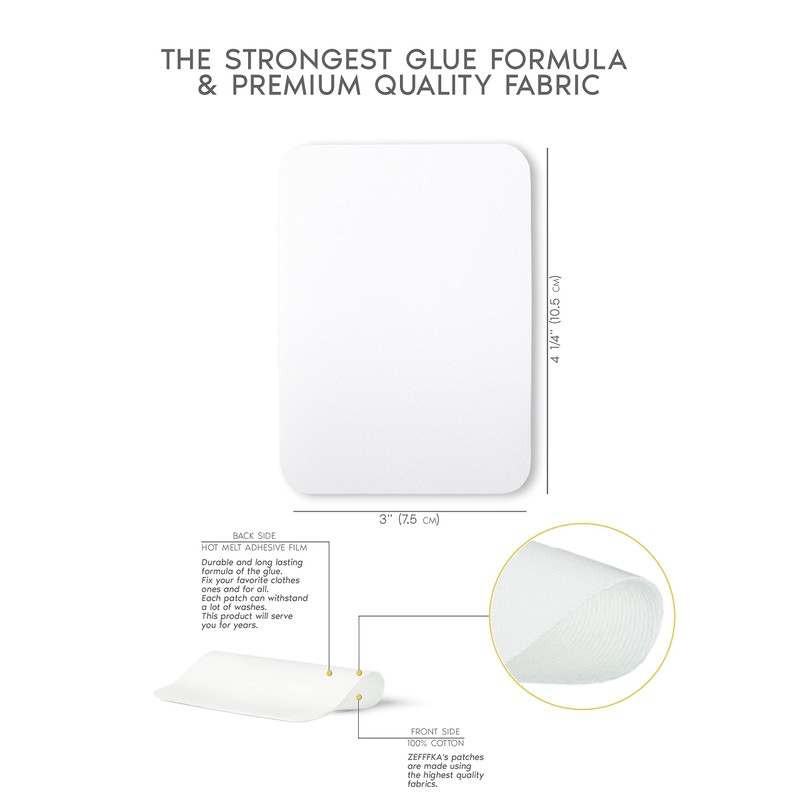 - 𝗣𝗮𝗰𝗸𝗮𝗴𝗲 𝗜𝗻𝗰𝗹𝘂𝗱𝗲𝘀: 12 iron-on fabric patches, size 3" by 4-1/4" (7.5 cm x 10.5 cm). Ideal size will help to conceal the shortcomings of both small and large holes and enough to create your own design. Black or white color will perfectly match your different clothes. Front side of the patches is 100% cotton, rear side is covered with the strongest hot-melt adhesive film. Patches made in EU using high quality materials.