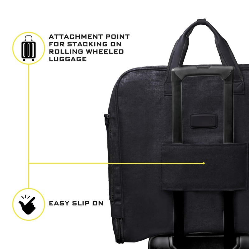 - TRAVEL IN WORLD CLASS: Maximized storage capacity for an attractive combination closet and briefcase on the go. With a professional exterior look and an elegantly imprinted full interior lining, this is the best travel garment suitcase available today.