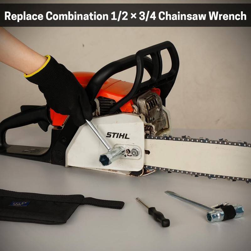 - Dual-Size Chainsaw Wrenches with Flathead End: Each chainsaw scrench is designed with 13mm and 19mm hex sockets for spark plugs and bar nuts. The handle ends with a flathead screwdriver, giving you multiple functions in one durable steel tool.