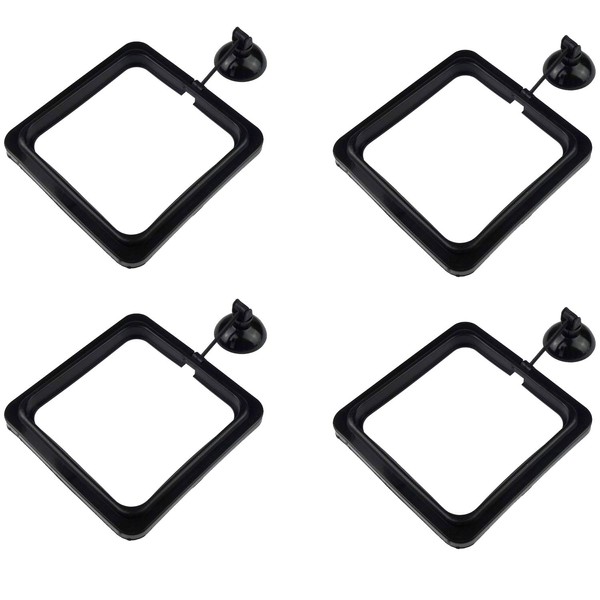 Zelerdo 4 Pack Aquarium Fish Feeding Ring Floating Food Feeder, Square Shape with Suction Cup, Black
