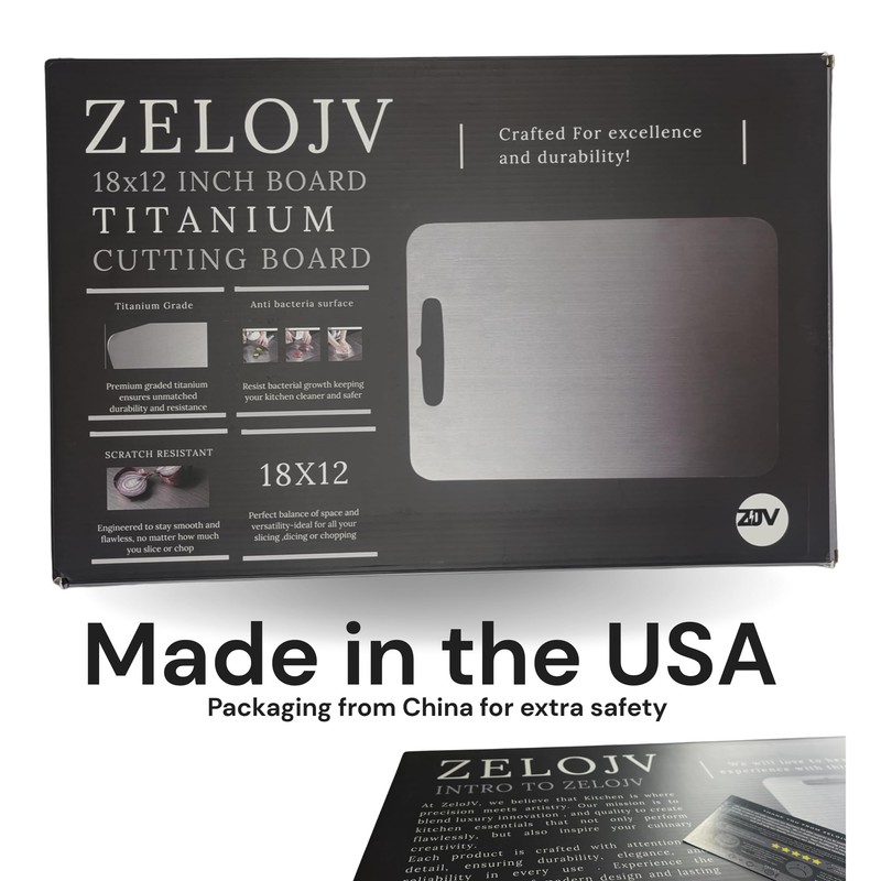 - 18×12” Large Size – Made in USA This large titanium cutting board made in USA gives you plenty of prep space — ideal for chopping meats, fruits, or vegetables.