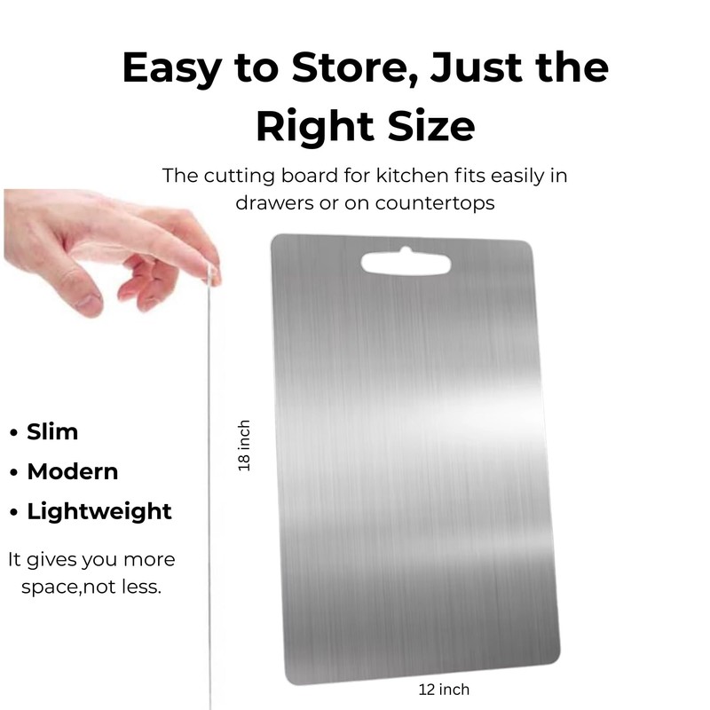 - Pure Titanium – Built to Last Made from 100% titanium, this durable cutting board is rust-resistant, sleek, and ultra-strong — perfect for everyday prep.