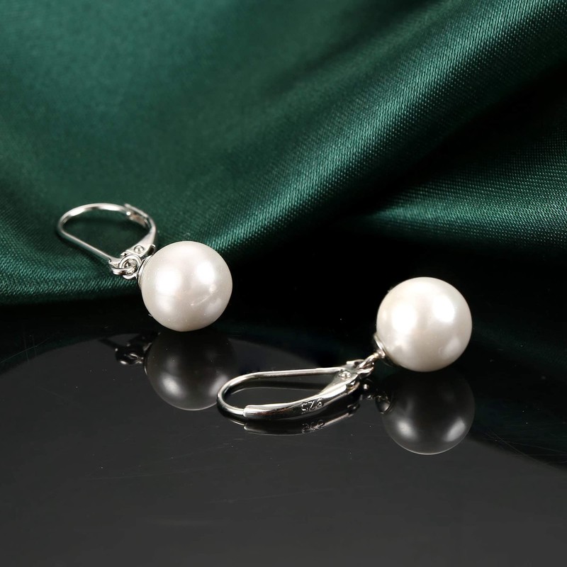 ZELORES 925 Sterling Silver Pearl Leverback Earrings for Women White Gold Plated Pearl Drop Earrings Dainty Bridal Wedding Drop Dangle Earrings (Pearl)