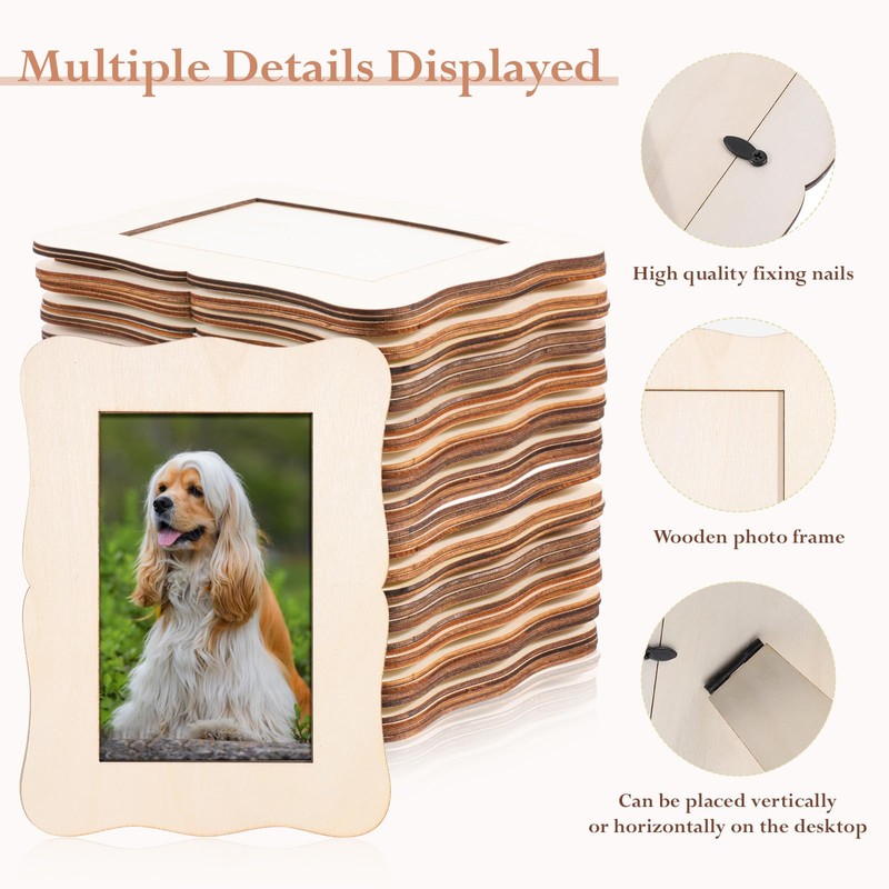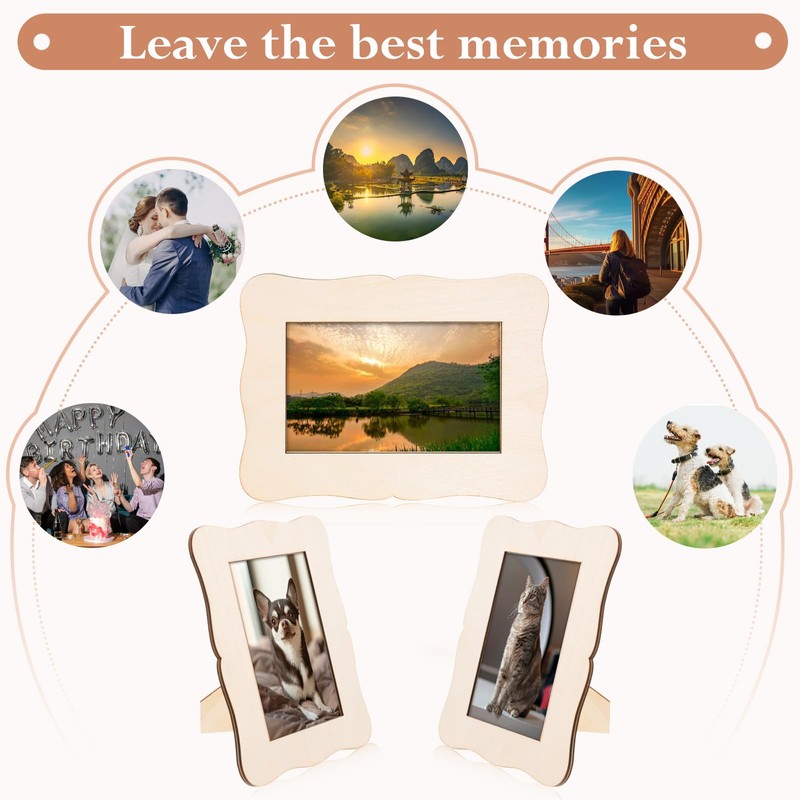 - 【Easy to use】When using these wooden picture frames for crafts, you only need to open the fixing buckle on the back, then put the photo in and fix it. There is a bracket on the back for easy placement