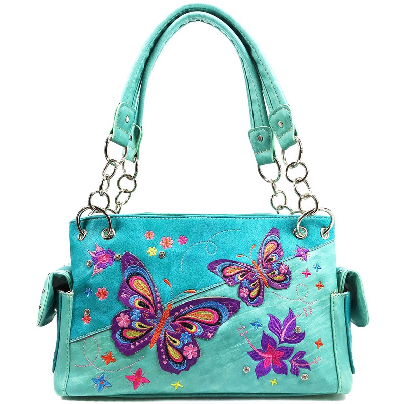 Zelris Butterfly Flower Season Embroidery Women Conceal Carry Shoulder Handbag (Turquoise Blue)