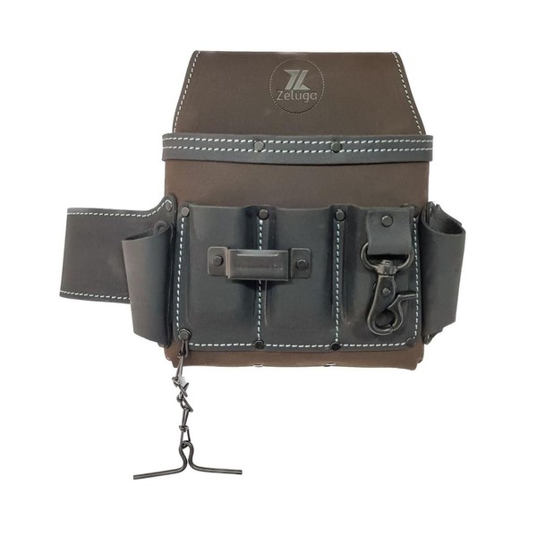 Zeluga 20-386 6 Pocket Nubuck Saddle Leather Electrician Tool Pouch, Brown/Black