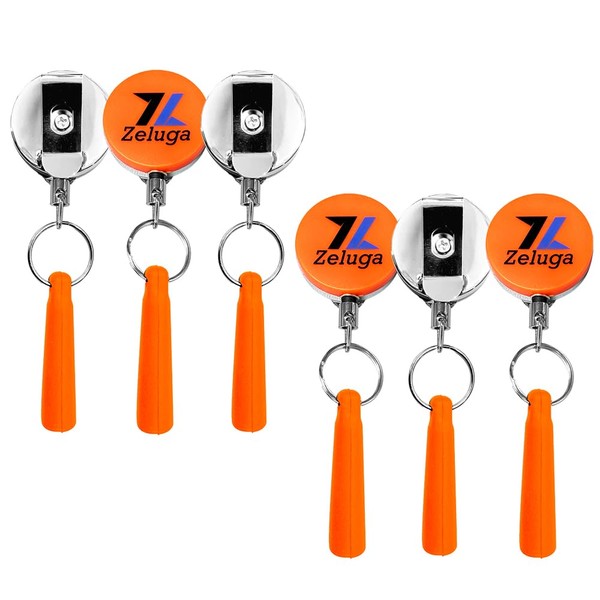 Zeluga 25-514 6pcs Retractable Pull Pen Pencil Holder with 26'' Steel Pull Wire, Elastic Silicone Lanyard Pen Holder, Orange