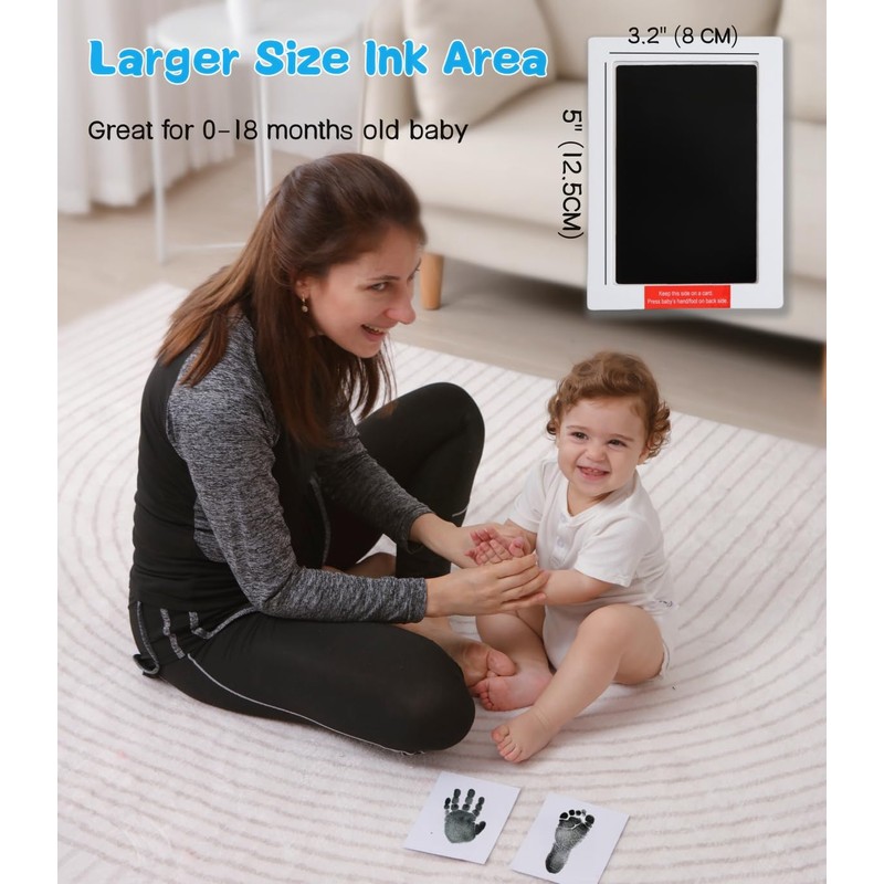 - XL baby ink pad window with additional cards: the ink area size: 12.5 x 8 cm, never worry about the baby ink pad is not large enough to copy your baby's handprint and footprint. For each Clean Touch ink pad, you will receive 3 white cards. So you have more exercise options to get your baby's perfect baby handprint and footprint. 💡Note: The ink is limited. Please use it wisely