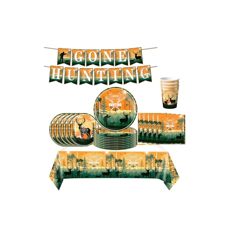 Zempertoopa Hunting Birthday Party Decorations, Hunting Camouflage Party Paper Plates, Birthday Party Decorations, Party Tableware Set, Theme Party Tableware Set (B)