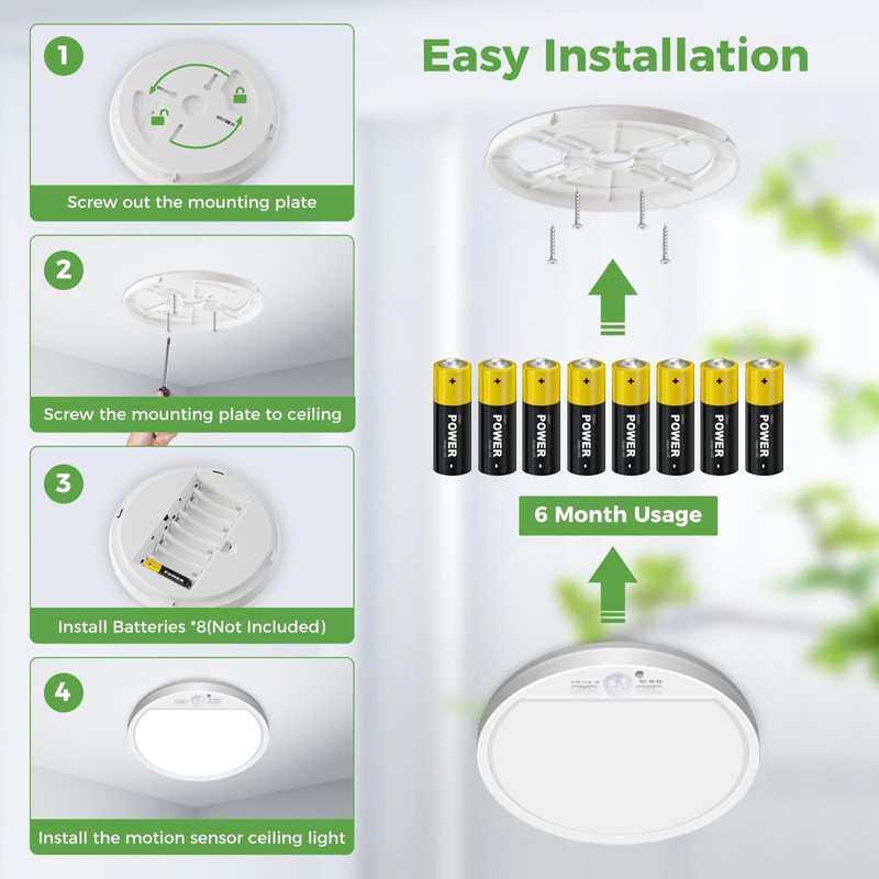 - ??Einfache und schnelle Installation??Dank des kabellosen Designs ist die Installation sehr einfach und in wenigen Schritten erledigt. Diese deckenlampe bewegungsmelder eignet sich perfekt f??r badezimmer, k??che, flur, wohnzimmer, b??ro, wand, werkstatt, garage, treppe, usw, und erh?ht so erheblich den Komfort in Ihrem t?glichen Leben