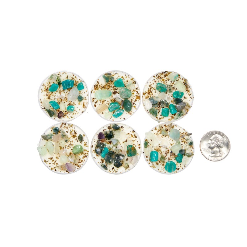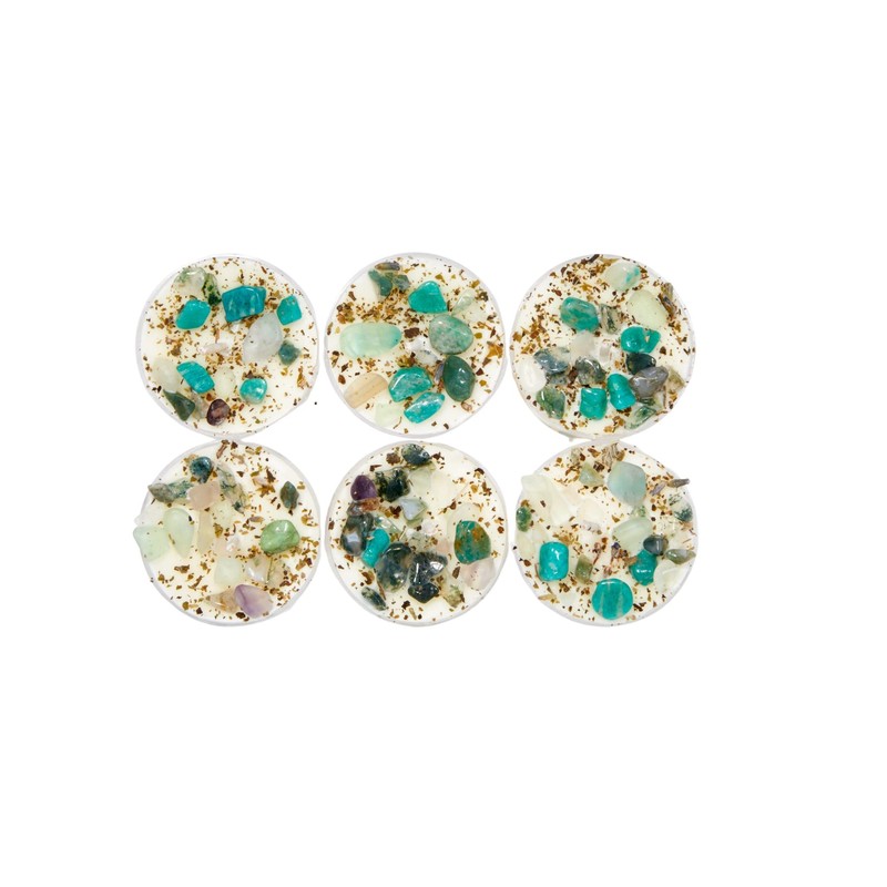 - Topped with Genuine Crystals, Herbs, and Flowers: Amazonite, Fluorite, Moss Agate, Lavender, Passion Flower, Lemon Balm