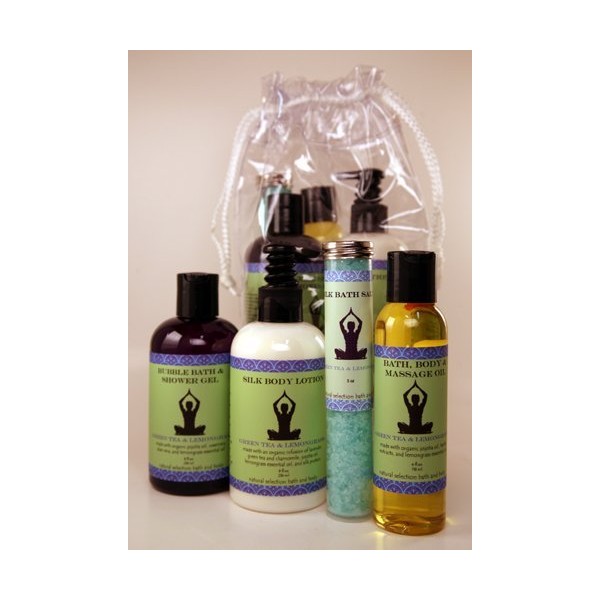 - Full size organic shea body lotion, bubble bath, scent spray, and bath, body, massage oil.