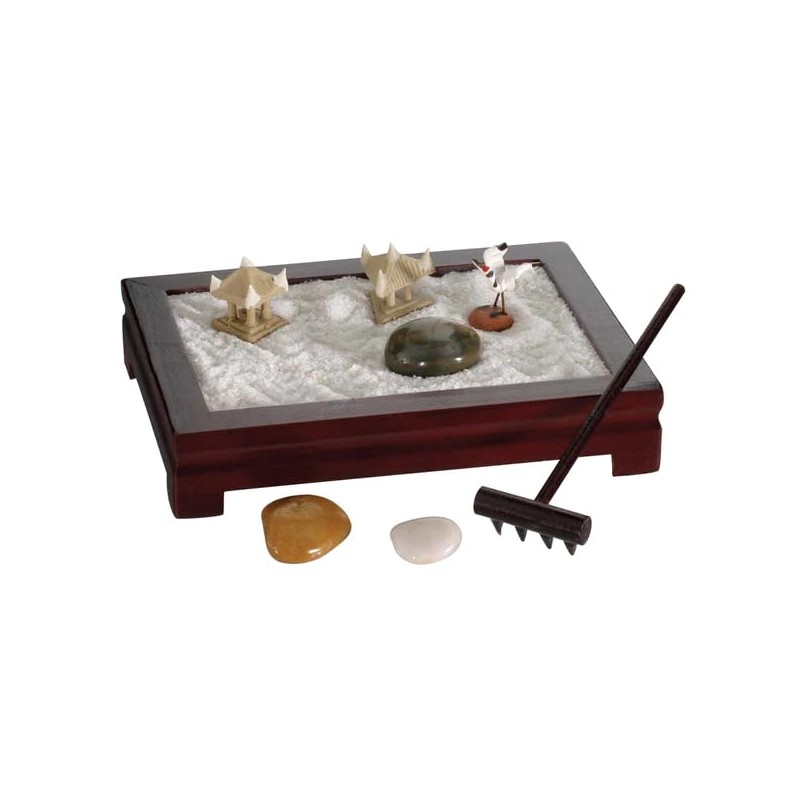 - Each t also contains 3 colorful polished stones, 1 long-handled wooden rake, 1 mini ceramic crane figure, and 2 architectural figurines.