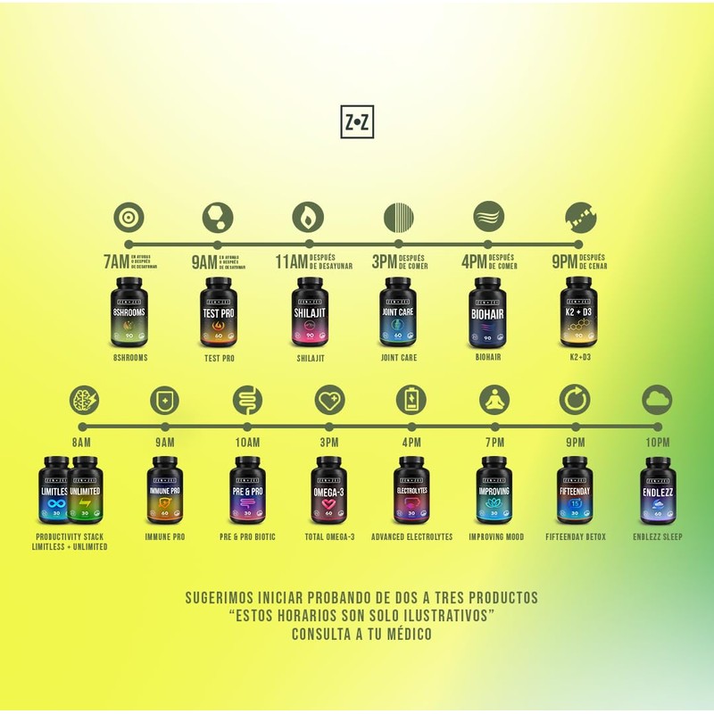 - ⚡️ Uso sugerido — Tomar 1-2 cápsulas de UNLIMITED preferiblemente en ayunas. Para maximizar resultados, tomar diario por al menos 30 días. No exceda la dosis recomendada.