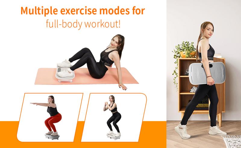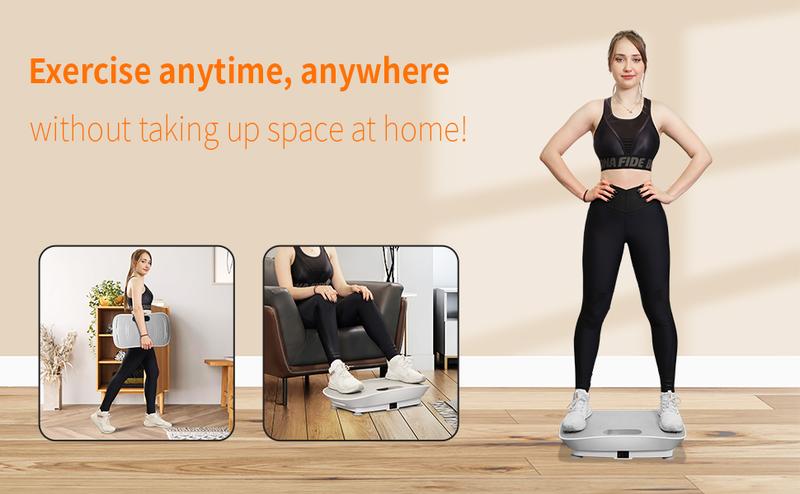 Efficient Workout💪Our vibration platform offers an intense workout, stimulating muscle contractions up to 50 times per second. This efficiency strengthens muscle tone, boosts strength, and improves flexibility.