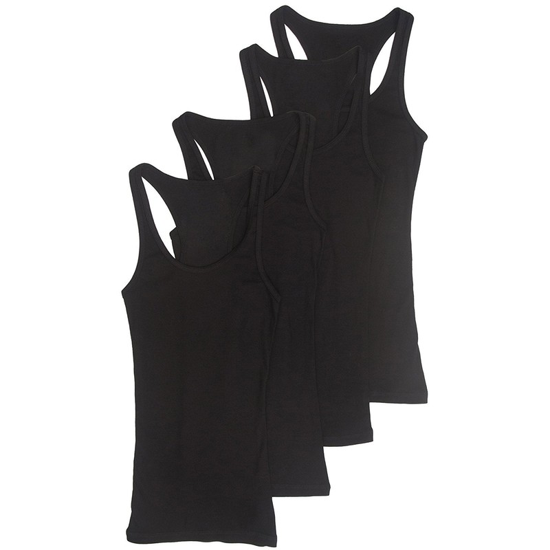 Zenana Women's Outfitters 4 Pack Basic Ribbed Racerback Tank Top, Black, Medium