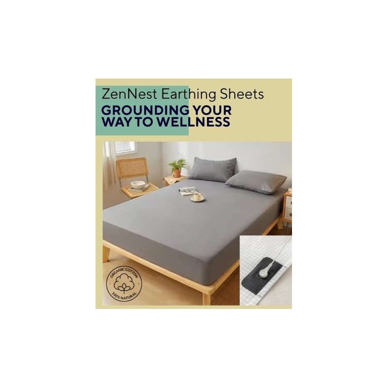 Zenapura ZenNest Grounding Organic Cotton Fitted Sheet - Earthing Connection for Better Sleep - Bed Sheets - Eco Friendly, Premium Quality (Gray, Full), ZP-ZN-001x