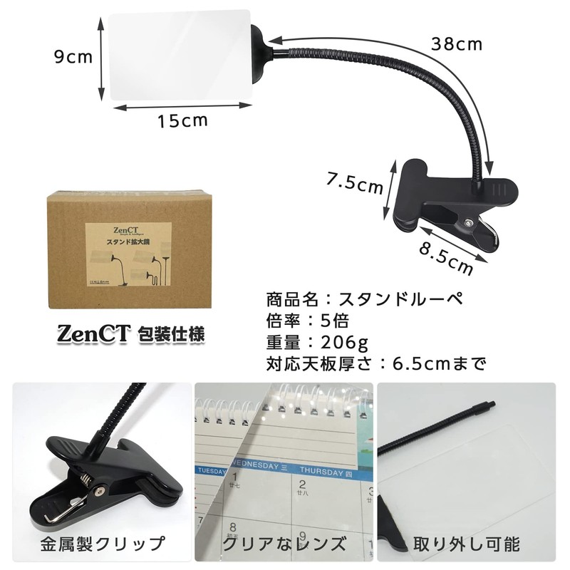 ZenCT CT182 Stand Magnifier with LED Light, Clip Ready