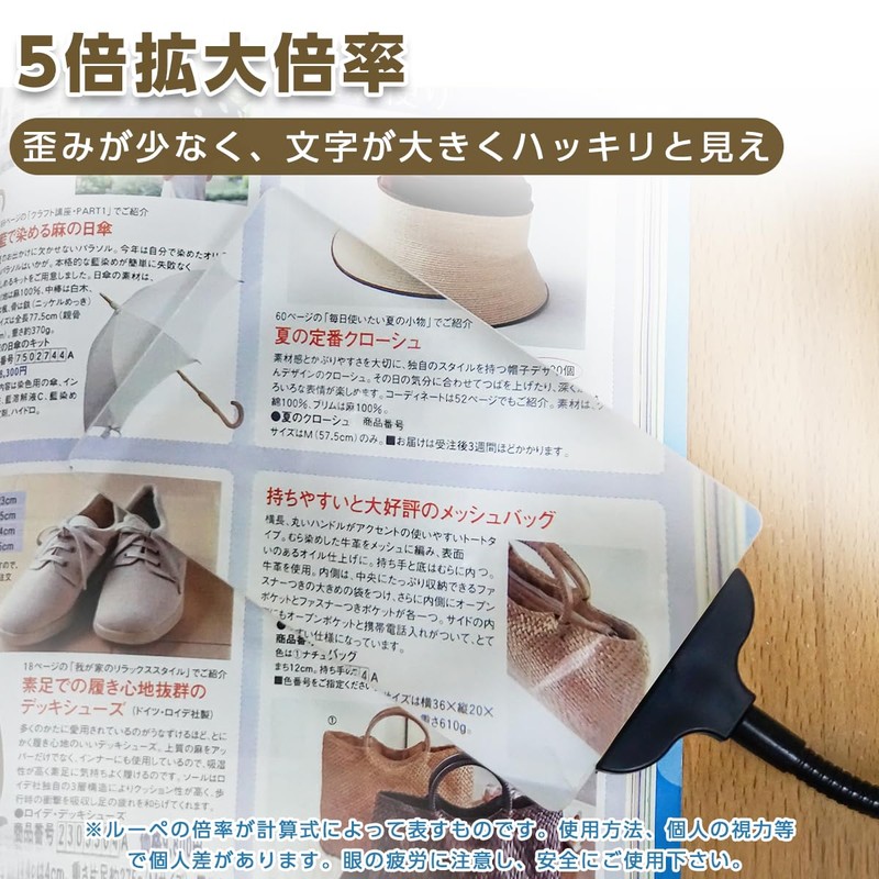 - Note: The magnification of the magnification of the magnification of the magnifier is depicted by the calculation. There may be individual differences depending on how it is used, and your eyesight. Be careful of eye fatigue and use safely