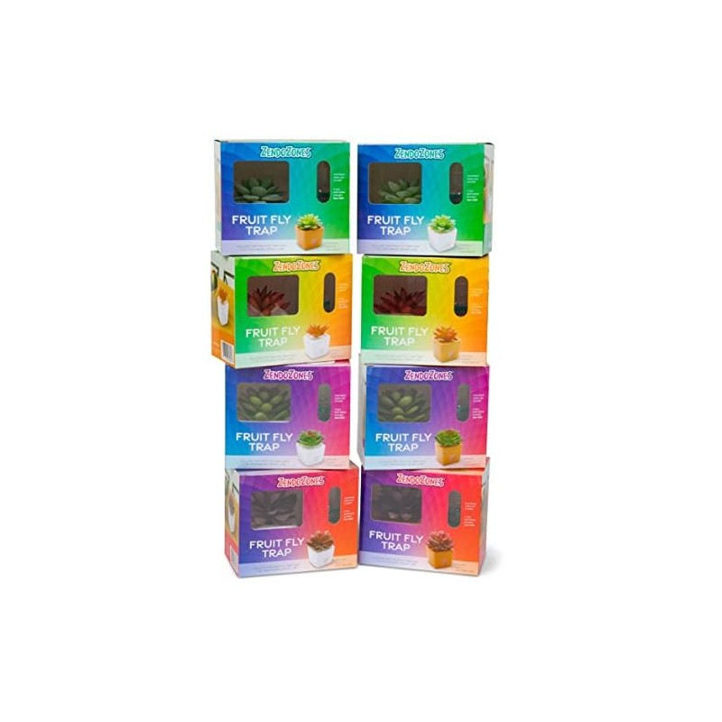 ZendoZones Fruit Fly Trap with Zendo Lure, Joyful Janet with Plastic, White Base, Refillable and Reusable, Long-Lasting