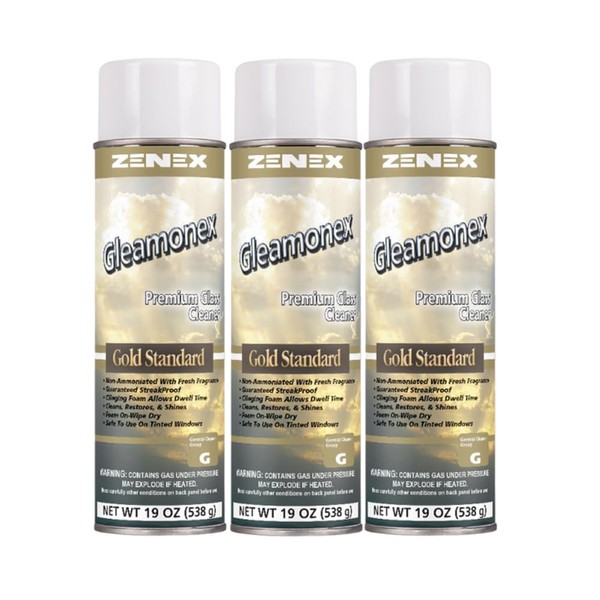 Zenex Gleamonex Glass Cleaner. 3 net 19 oz. Cans.