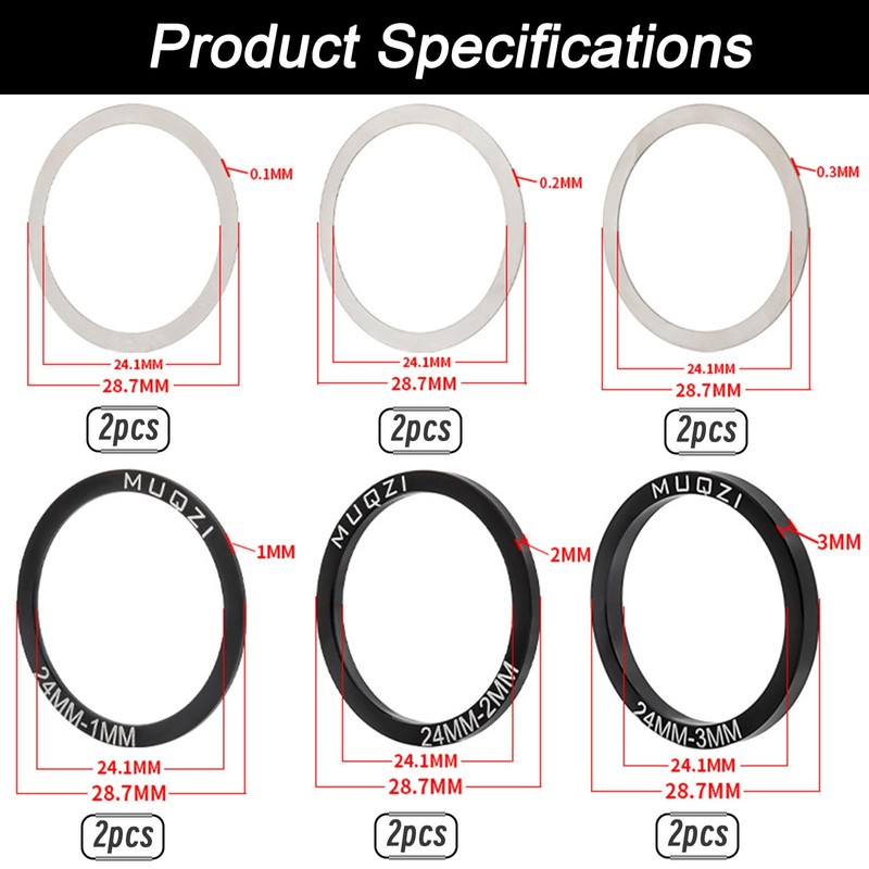 - 【Verpackungsinhalt】Die Verpackung enthält 12 Fahrrad-Unterlegscheiben. Die Aluminium-Unterlegscheiben haben einen Innendurchmesser von 24 mm und sind in den Stärken 1 mm, 2 mm und 3 mm erhältlich. Die Edelstahl-Unterlegscheiben sind in den Stärken 0,1 mm, 0,2 mm und 0,3 mm erhältlich, jeweils 2 Stück pro Größe.