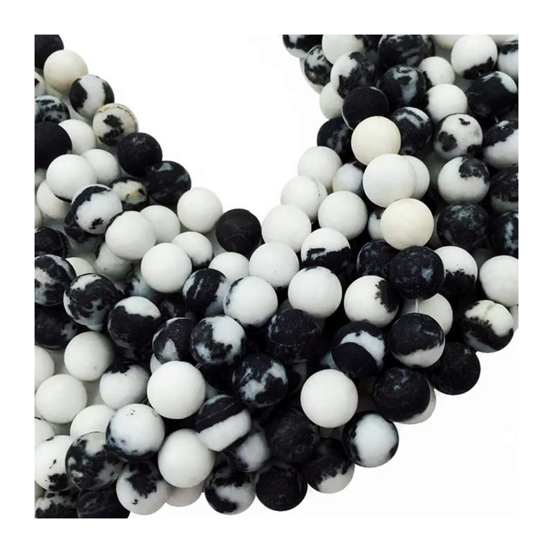 Zenkeeper 108 Pcs Zebra Jasper Beads for Jewelry Making 8 MM Black and White Zebra Gemstones Loose Beads for Bracelet Making