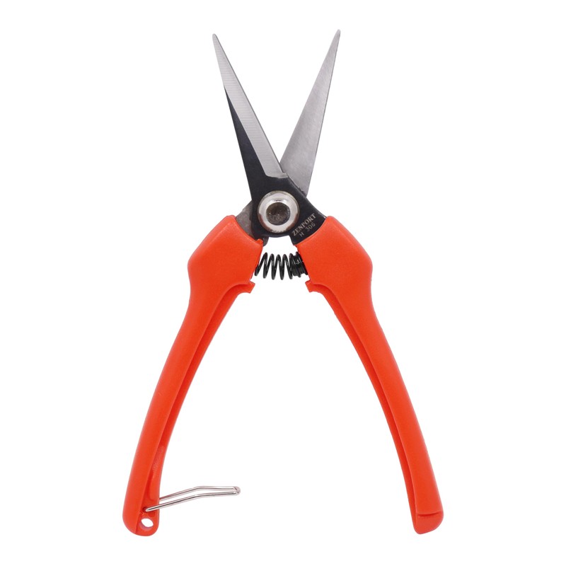 The Zenport H306 euro-style harvest shear is extra strong with carbon treated steel needle nose blades designed for precision cutting and harvesting, especially rapid high volume harvesting of grapes. Long straight blades allow you to make deep precise cuts to fruit stems without damaging them. Spring loaded action automatically opens blades after each cut; blades lock closed when not in use. Handles with comfortable, non-slip grips provide excellent control.