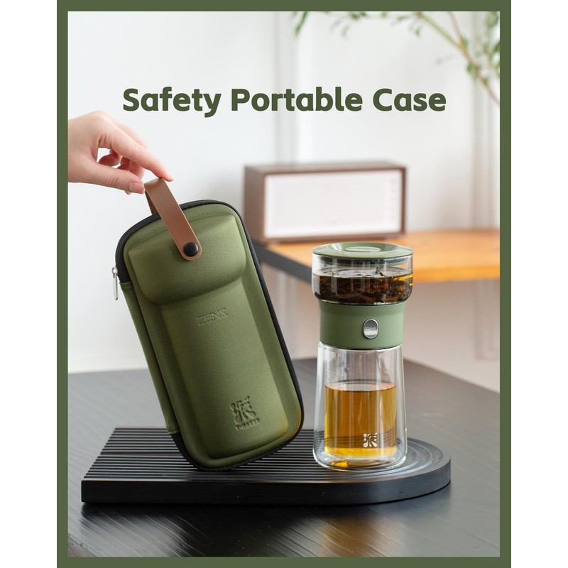 - Effortless One-Touch Brewing: Say goodbye to the hassle of traditional tea strainers, experience seamless tea brewing with the ZENS One Touch Tea Maker. Simply press, steep, and pour—no spills, no over-steeping, just a perfect cup Gongfu tea every time. with it's own mug and extra fancy carrying case, Army green color. This must be the enchanted tea pot alternatives for Tea Lovers!