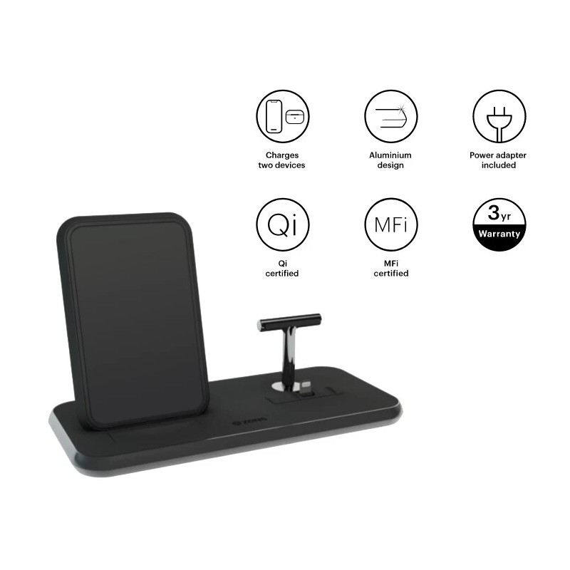 Zens ZEDC06B/00 Stand+Dock Aluminium Wireless Charger - Black