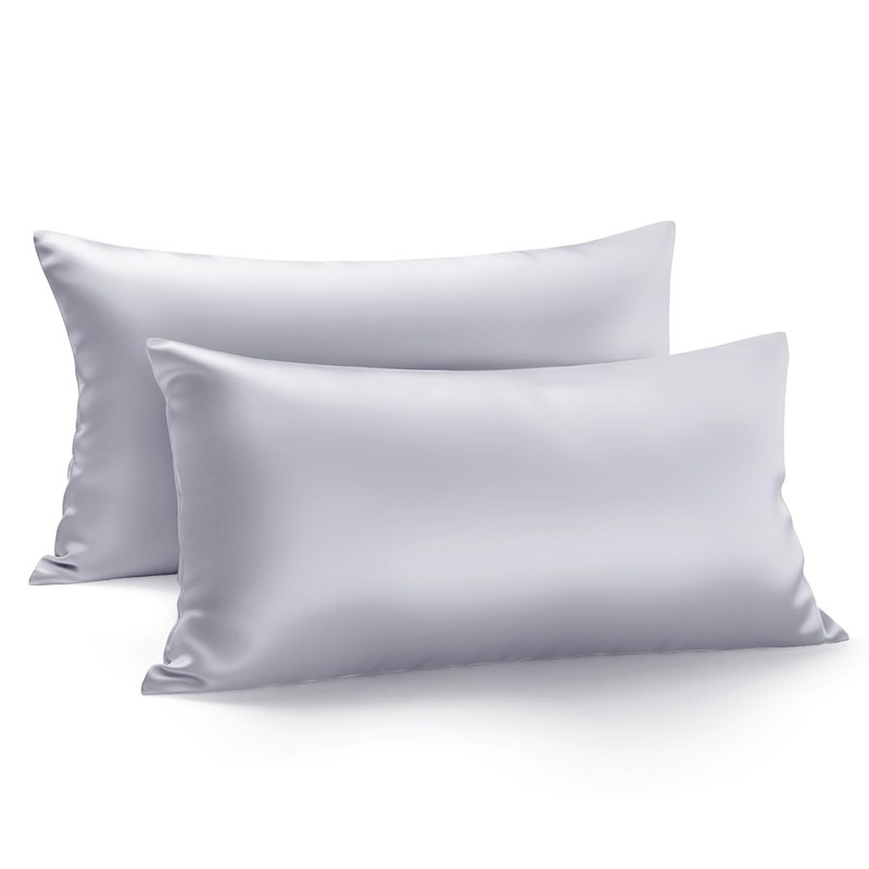 Zenssia Luxury Satin Pillowcase 40 x 80 cm, Set of 2, Soft as Silk Pillowcase 40 x 80 cm, Hair and Skin Care with Zip, Light Grey