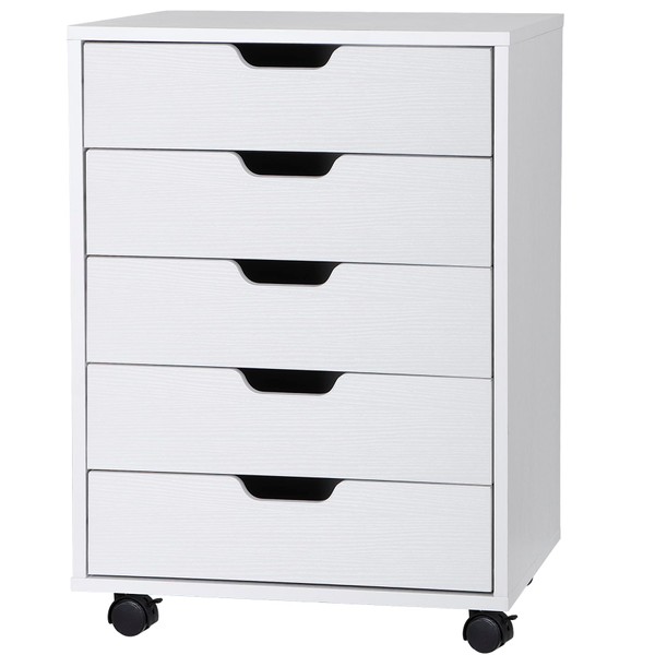 ZenStyle 5 Drawer White Wood Dresser, Storage Dresser Cabinet with Wheels for Home Closet Bedroom Bathroom Office Laundry Entryway Hallway