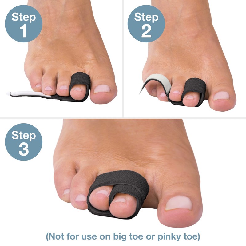 - Washable and Reusable - Made of soft, latex-free nylon material and lined with foam padding, our buddy toe wraps are easy to use and comfortable to wear. Slip the loop around the affected toe, then wrap the fabric around the adjacent toe and gently press the hook and loop fastener to close securely. Hand wash and air dry the corrector to reuse again and again.
