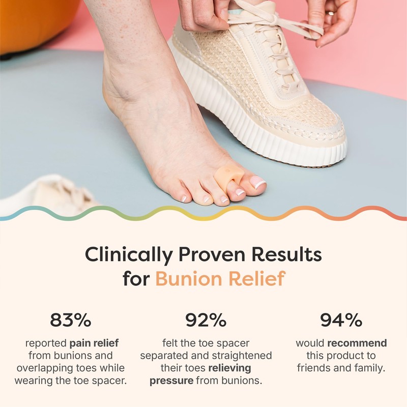 - Comfortable and Durable - The soft, flexible gel toe ring conforms to your toes, fitting comfortably in any shoes and allowing you to stand or walk for longer in comfort. Our toe separators can be worn during the day and at night to provide continuous toe pain relief.