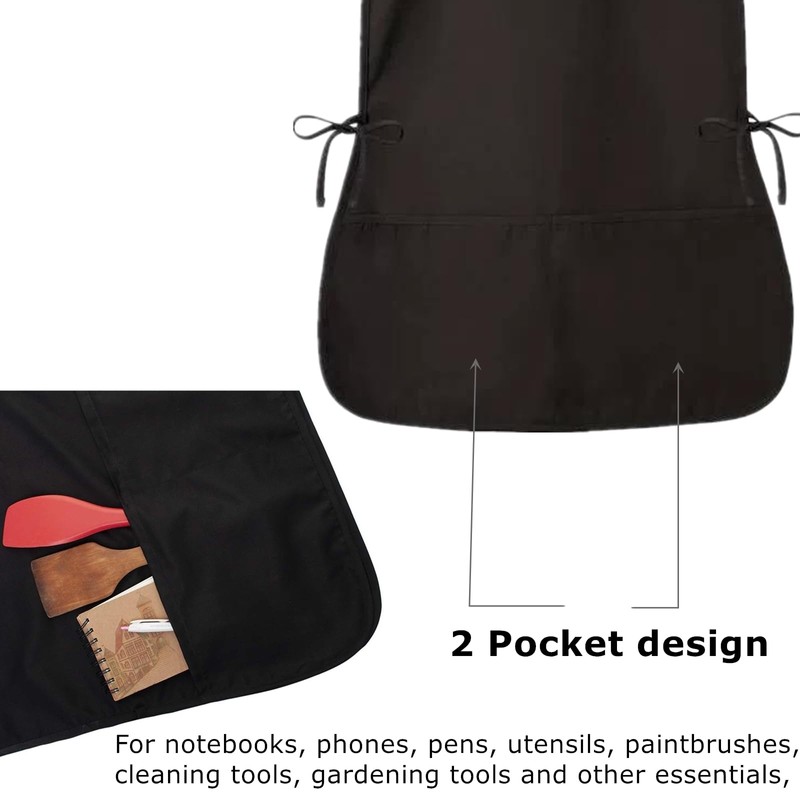 - Each black apron comes with 2 deep front pockets, providing storage space for all your needs. These two practical pockets are perfect for carrying items with you during cooking, cleaning, housekeeping, art classes, or beauty treatments, improving your efficiency