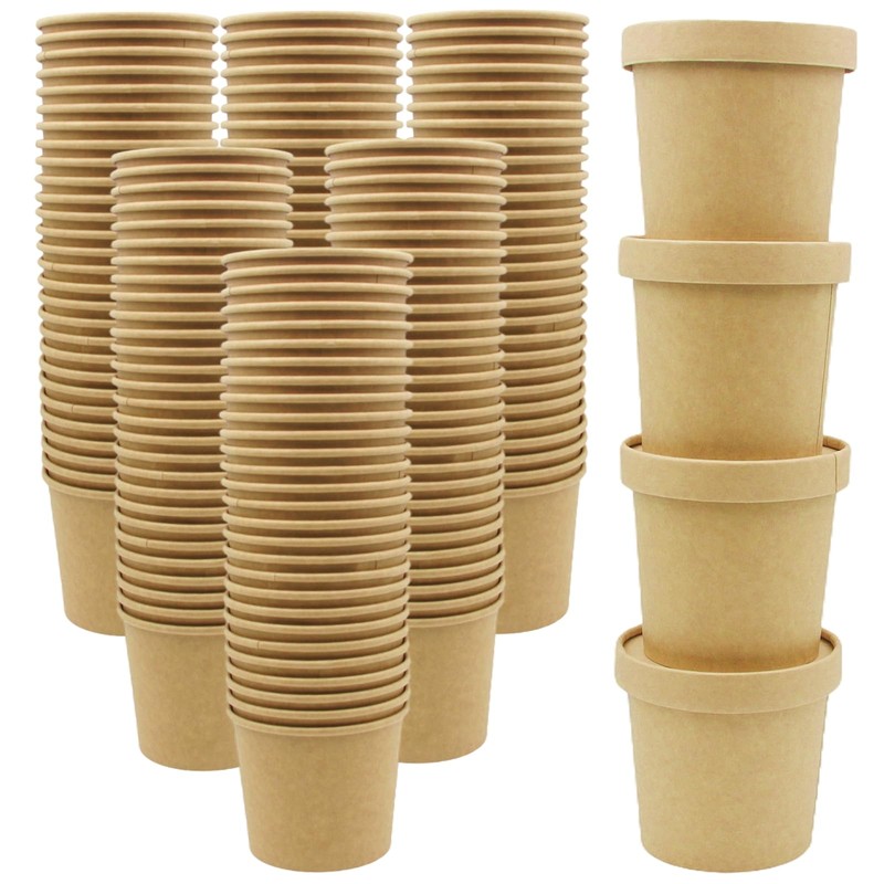 - 60 Pack 12oz Paper Soup Bowls with Lids - Our disposable ice cream containers & kraft food cups for restaurants, food trucks, holiday parties (Thanksgiving/Christmas), picnics. Stackable design saves storage space