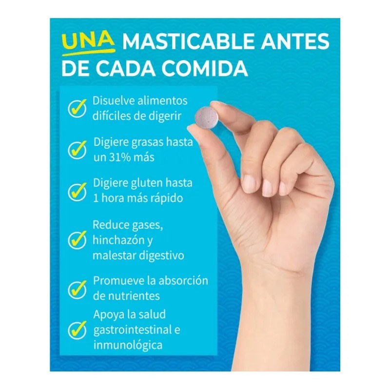 Estas tabletas son una alternativa perfecta para quienes buscan apoyo digestivo inmediato en un formato rico y fácil de consumir. Ya no tendrás que preocuparte por sentir pesadez o incomodidad después de tus comidas favoritas.
