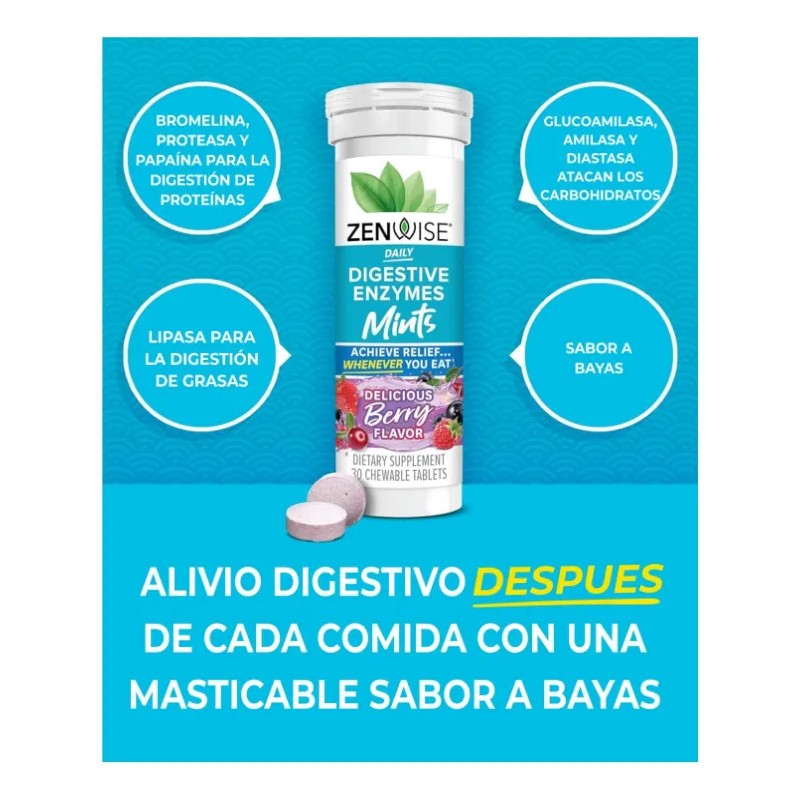 Zenwise Enzimas Digestivas 30 Tabletas Masticables Sabor Bayas