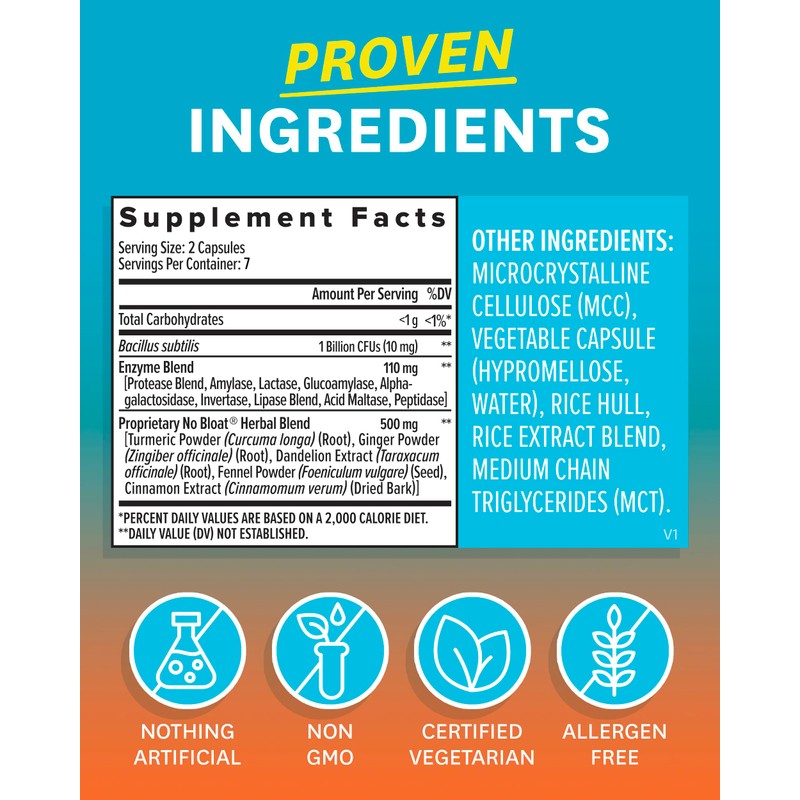 - Banish Indigestion: Fast relief with digestive enzymes, clinically proven probiotics, and organic botanicals which offer support for bloating and gas.