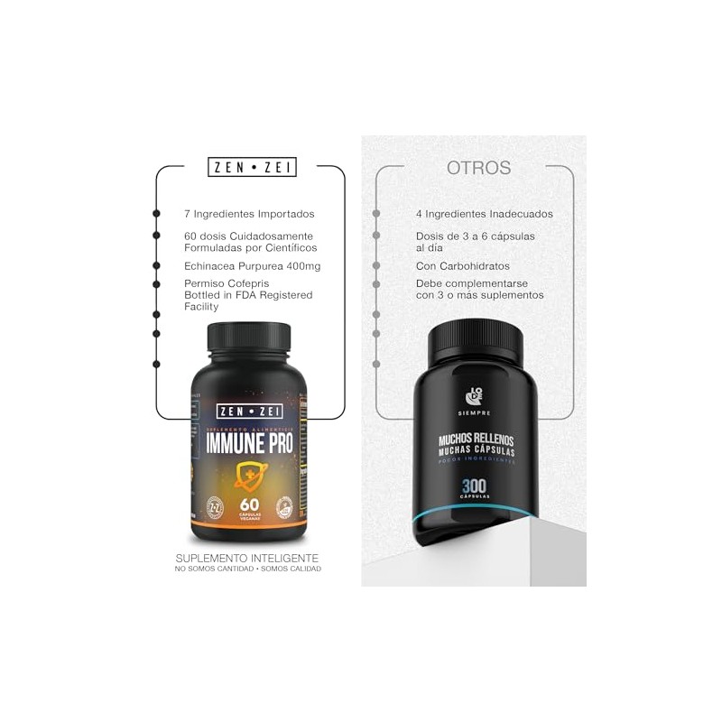 🌟 ⭐ ZEN•ZEI | IMMUNE PRO | Científicamente Formulado con 6 Ingredientes para Aumentar, Reforzar y Mantener - Con Echinacea, Zinc, Vitamina C, Jengibre, Ajo y Orégano | ULTRA-PREMIUM ⭐ 🌟