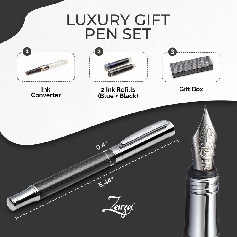 - THE ELITE WRITING EXPERIENCE: The ZenZoi fountain pen design is a testament to how simplicity is king. With a timeless design, carbon fiber construction that adds weight to your hand and makes for a remarkable writing experience, this pen is an utter bliss to your eyes & hands.