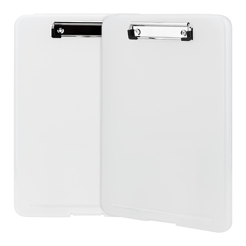 - PORTABLE STORAGE CLIPBOARD - This is a classic clear plastic clipboard storage box. This is a good thin clipboard storage box, which can store excess paper. You will like the practicality of this combination of storage box and clipboard.