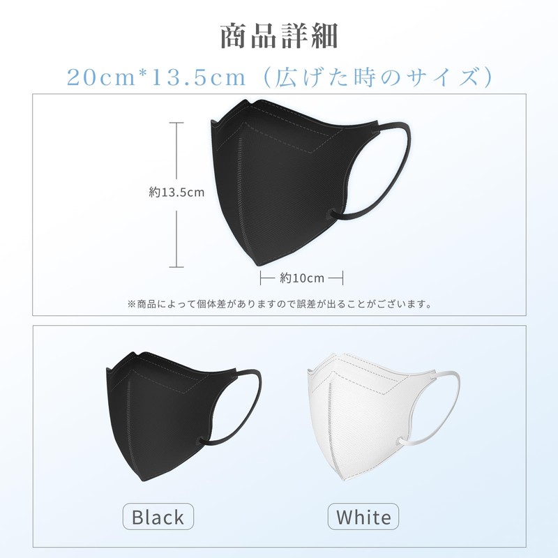 - 【3D立体構造!小顔に見える】マスクの中央部分にラインを入れて立体的に作ることで、着用してからすっきりとした小顔を演出!正面も横顔もフェイスラインを美しく魅せます。広げた時のサイズは20cm*13.5cmで、男女問わずオシャレに!