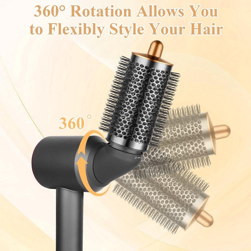 • Easy Installation: Quick and tool-free attachment, designed for hassle-free setup and use. Package Contents: 1* Large Round Volumizing Brush(Gold), 1* Upgraded Adapter