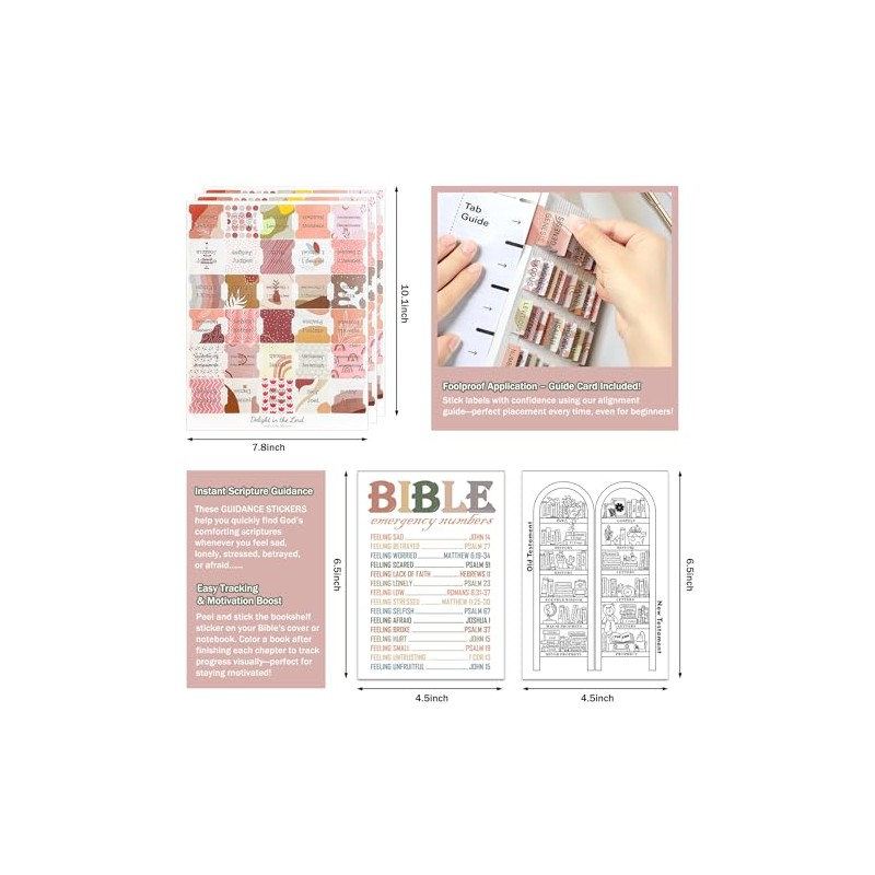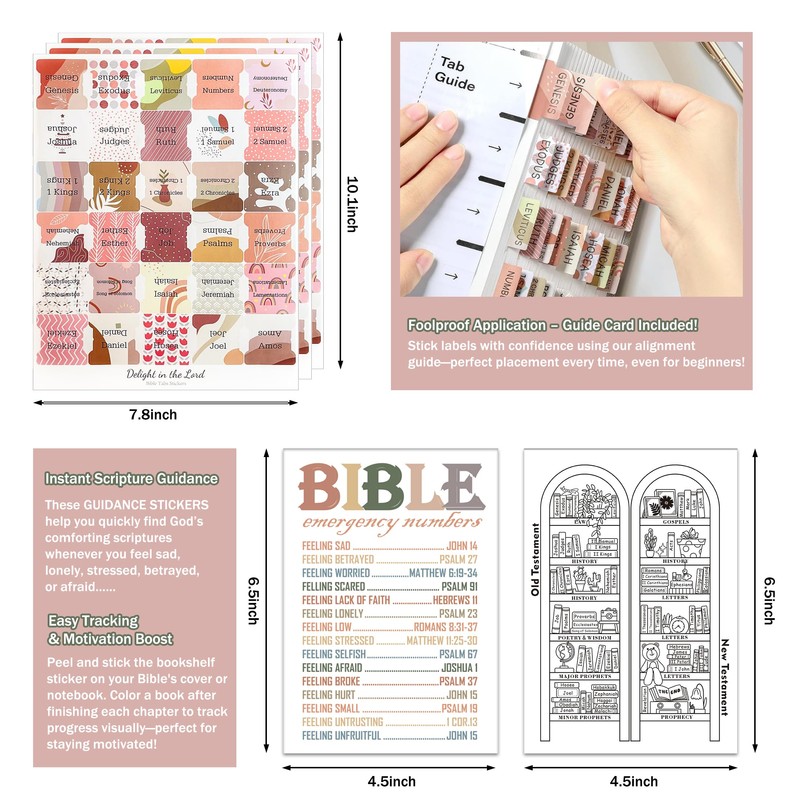 - 【Easy to Use】: Our stickers are made of self-adhesive material. Simply peel off the backing and stick them on the title page of your Bible or anywhere you like. Large Print Bible Tabs and Quick Navigation
